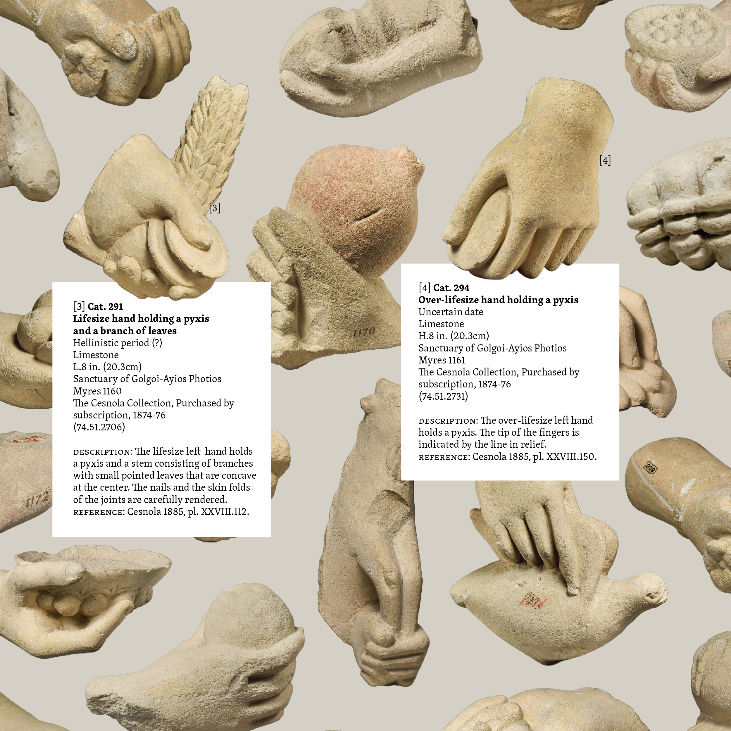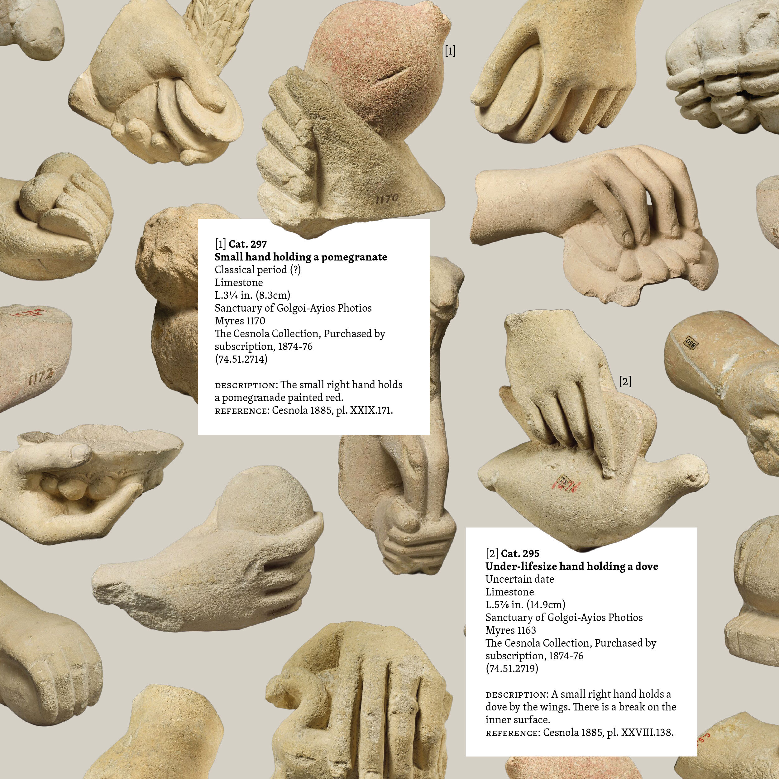 The Cesnola Collection comprises over 6,000 artifacts that span the Bronze Age to late antiquity, including terra cottas, stone carvings, glass, jewelry, and inscriptions from Cyprus. All items were excavated from the Cyprus under the supervision of Luigi Palma di Cesnola, U.S. Consul to Cyprus and later the MET’s first director. Today, the collection is considered one of the world’s most significant holdings of ancient Cypriot art.